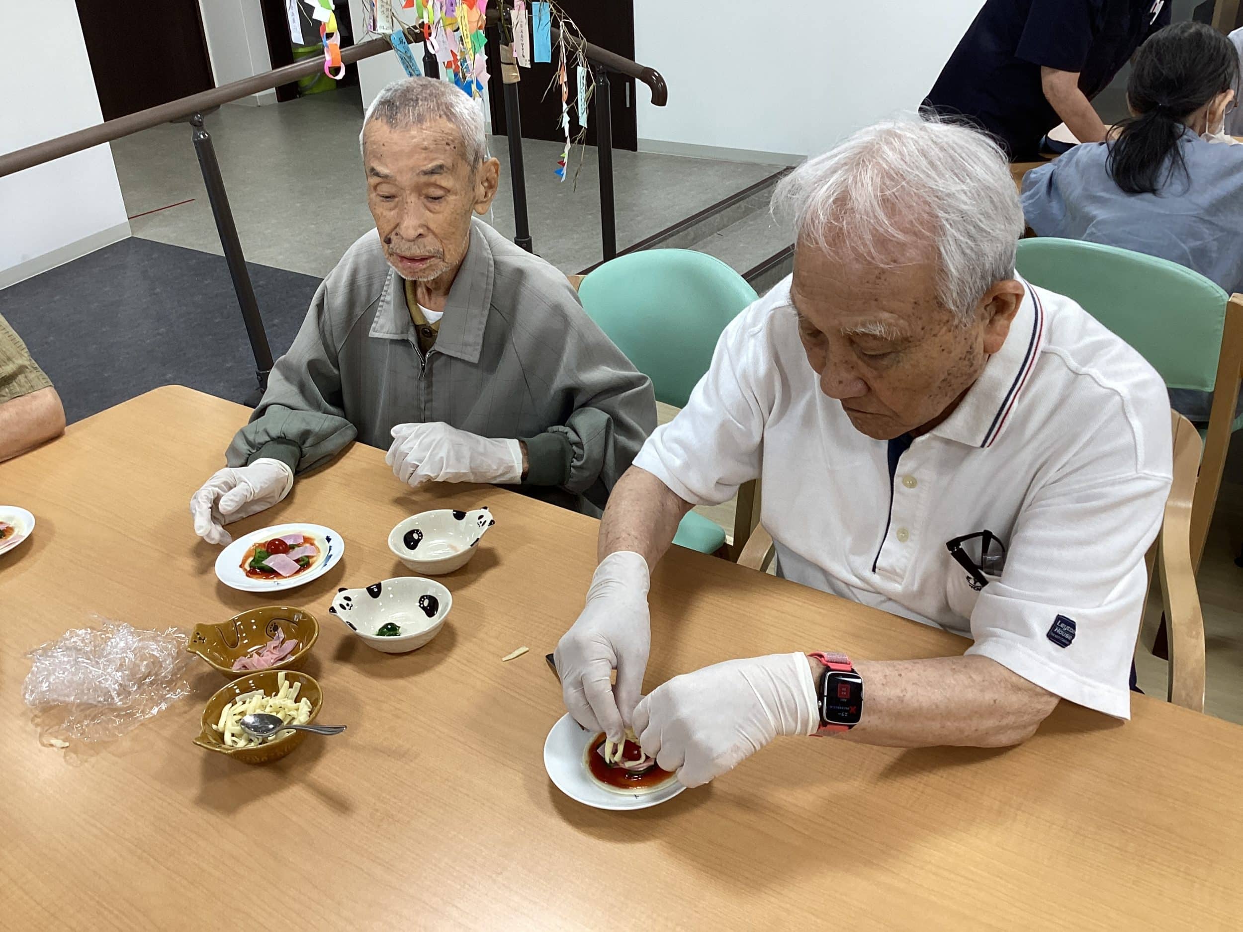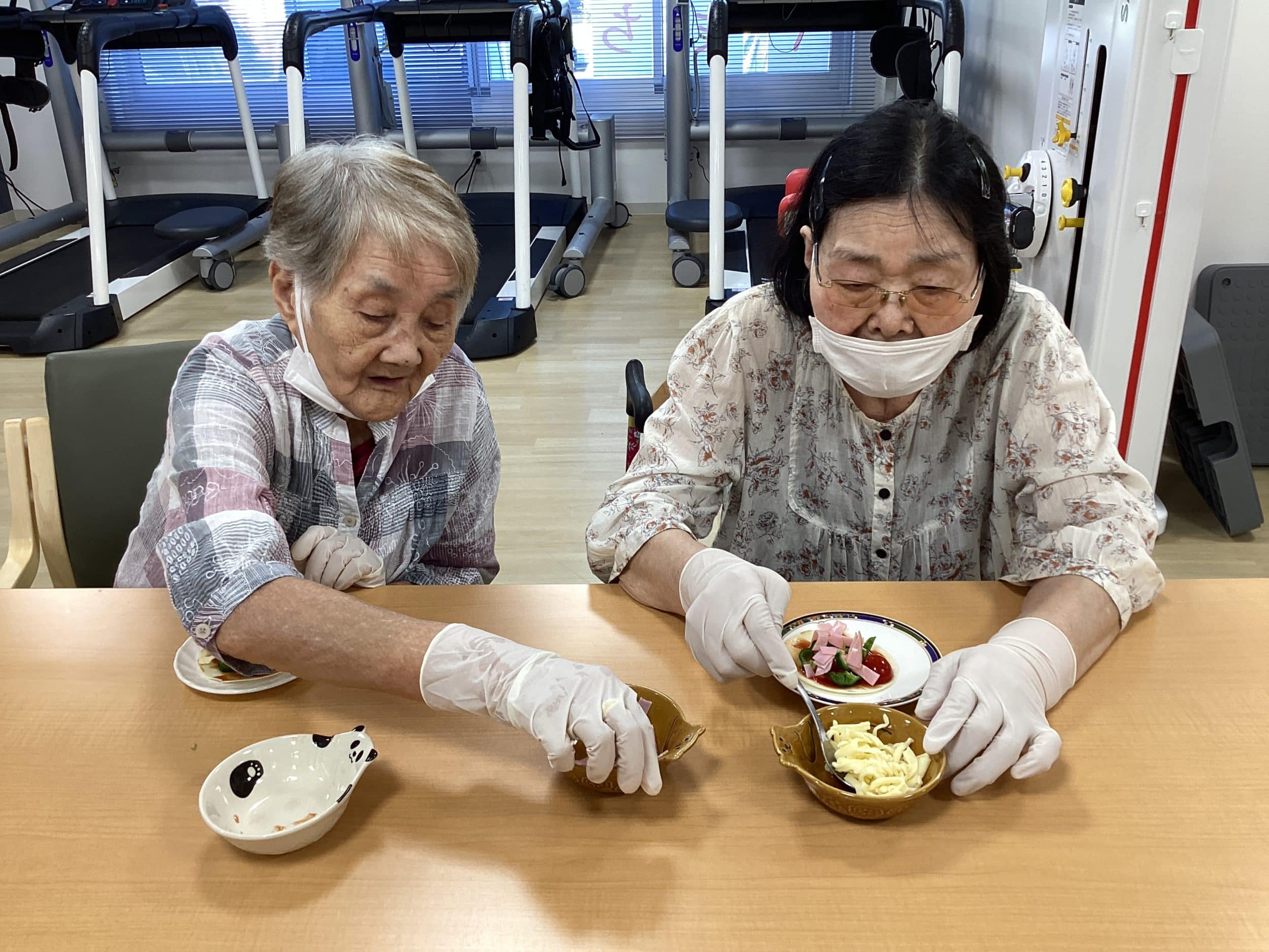 お知らせ、デイサービス、レクリエーション【デイサービスやまちゃん】7月のおやつ作り Posted on 2025.07.282025.09.09 by matudukien_staff 今月のおやつ作りの風景です。今回は「おやつピザ」を作りました。 餃子の皮にケチャップを付けて、その上にピーマンやハム、トマトなどを トッピングして焼くだけです♡ 「パリパリで美味しい!」「もう一枚食べれそう!」と みんなで美味しく頂きました。とっても簡単に作れるので是非作みなさんも作ってみて下さい。 R7.7月特養松月園の介護職員の紹介 松月園ヘルパーの職場紹介(7月)