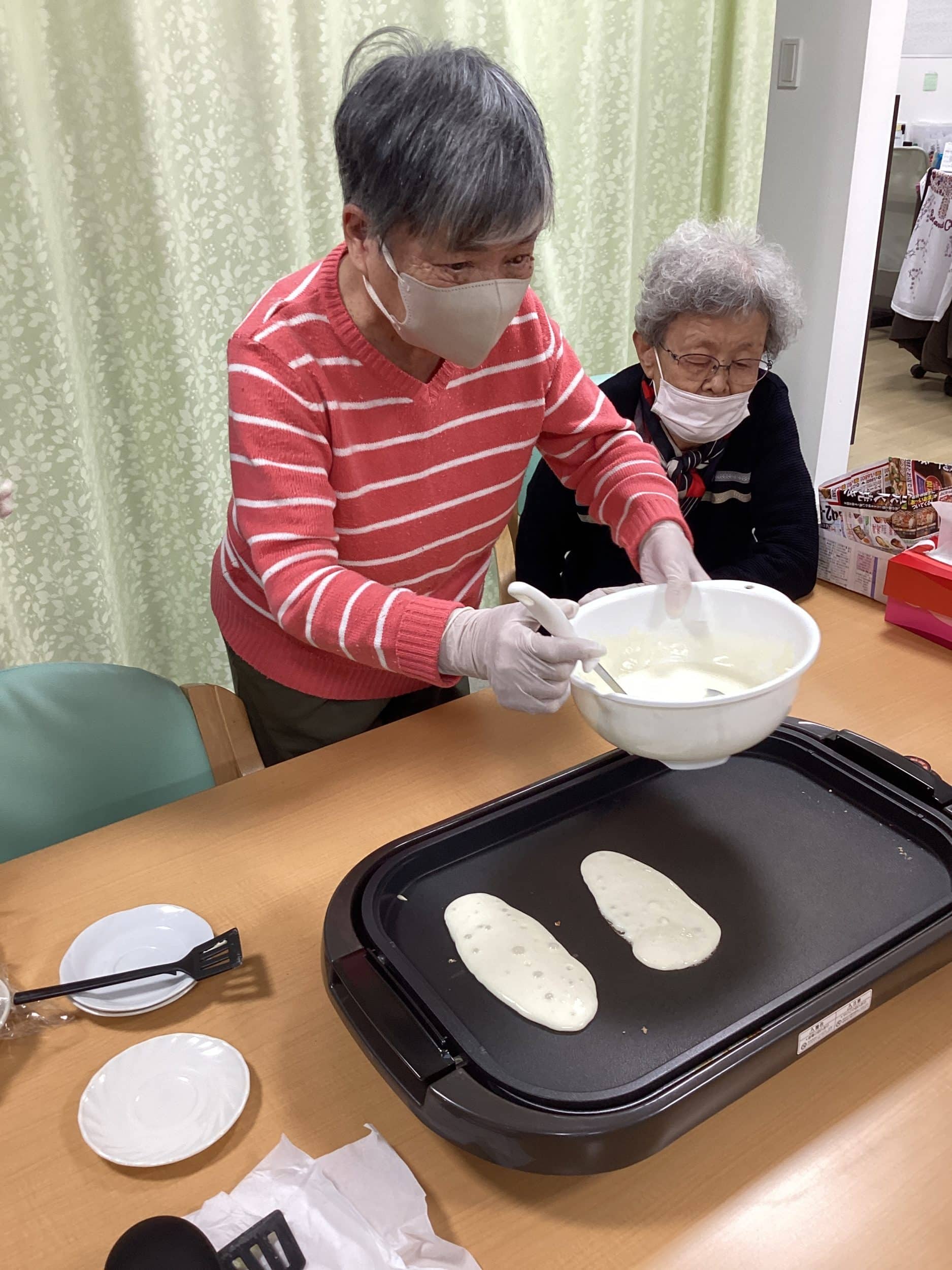 デイサービス、レクリエーション【デイサービスやまちゃん】あん巻き作り ☆2日目☆ Posted on 2026.02.252026.03.02 by matudukien_staff 先日に続いて「あん巻き作り」2日目です☆ 今回は生地を焼くところも、ご利用者様と一緒に行いました。 生地の大きさも上手く焼きあがりました。 あんことホイップクリームを乗せてクルリと巻いて頂きました♡ 【デイサービスやまちゃん】あん巻き作り ☆1日目☆