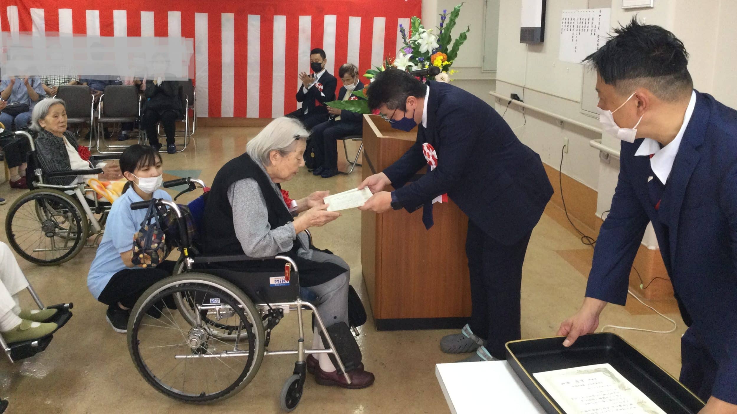 今年の表彰者は 白寿(99歳) 2名 米寿(88歳) 3名 IMG 5671x