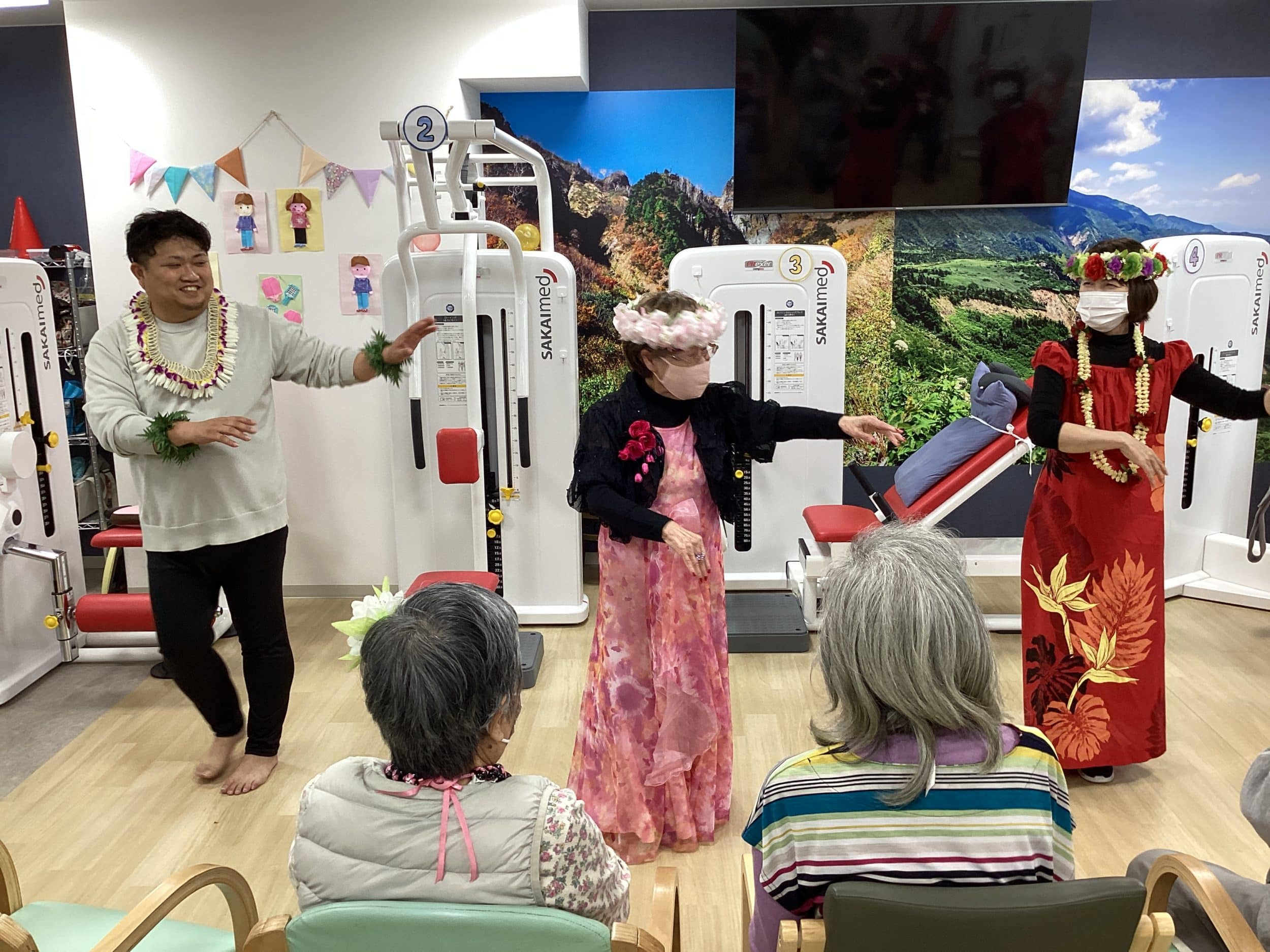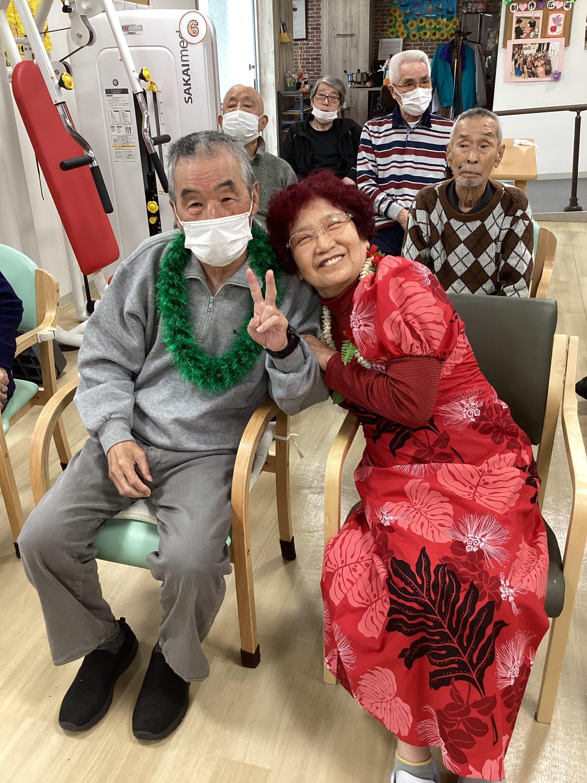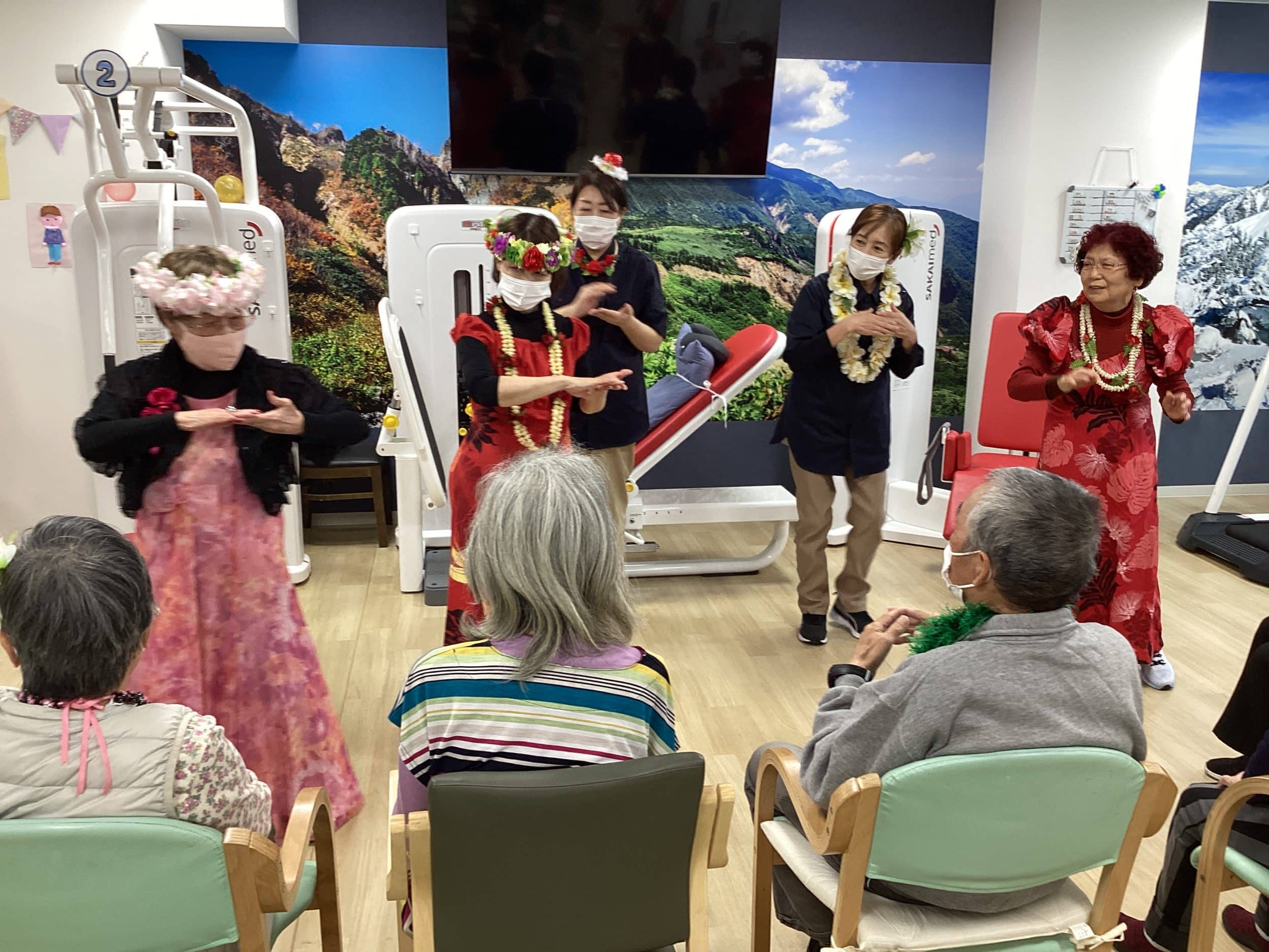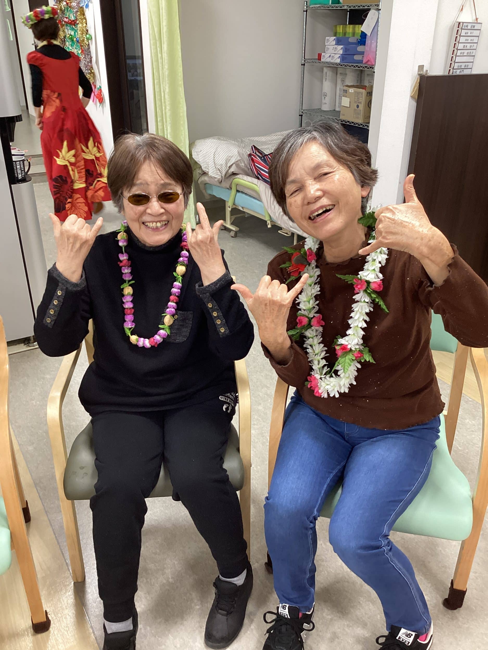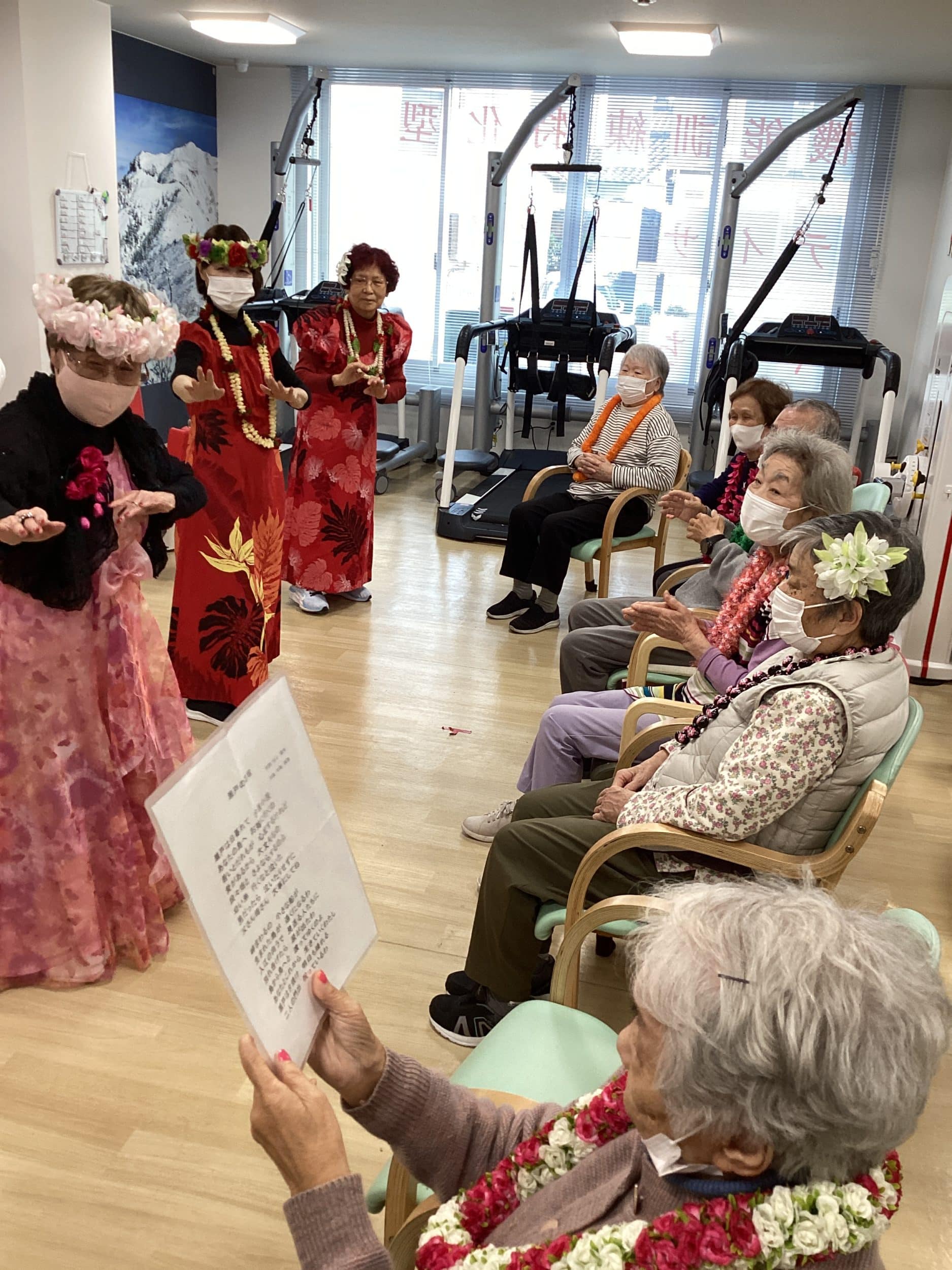 フラダンスをされていたご利用者様が今日の日の為に衣装をご持参で披露して下さいました♡