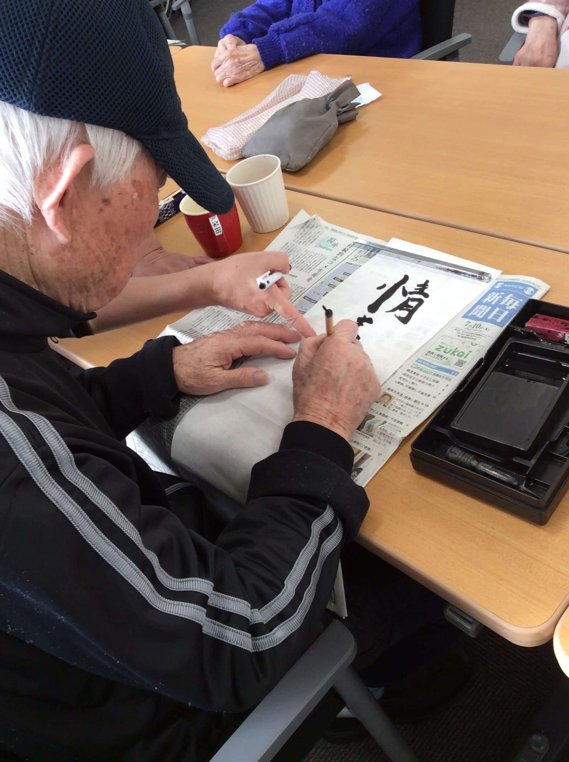 お知らせデイサービス~書初め~ Posted on 2026.01.13 by matudukien_staff 新年あけまして おめでとうございます ( ^)o(^ ) 今年も宜しくお願い致します( ^)o(^ ) 1月上旬に書初めをしました。 お一人お一人、抱負や好きな言葉を書いていただきました。 筆を持つことが久しぶりだったから、とても嬉しかったとお喜びの声をいただいて 職員も嬉しい気持ちになりました♪ 今年も頭と身体をしっかり動かして健康を維持し 行事もたくさん実施して 素敵な1年にしたいと思います(^^♪ 令和8年 新年のご挨拶