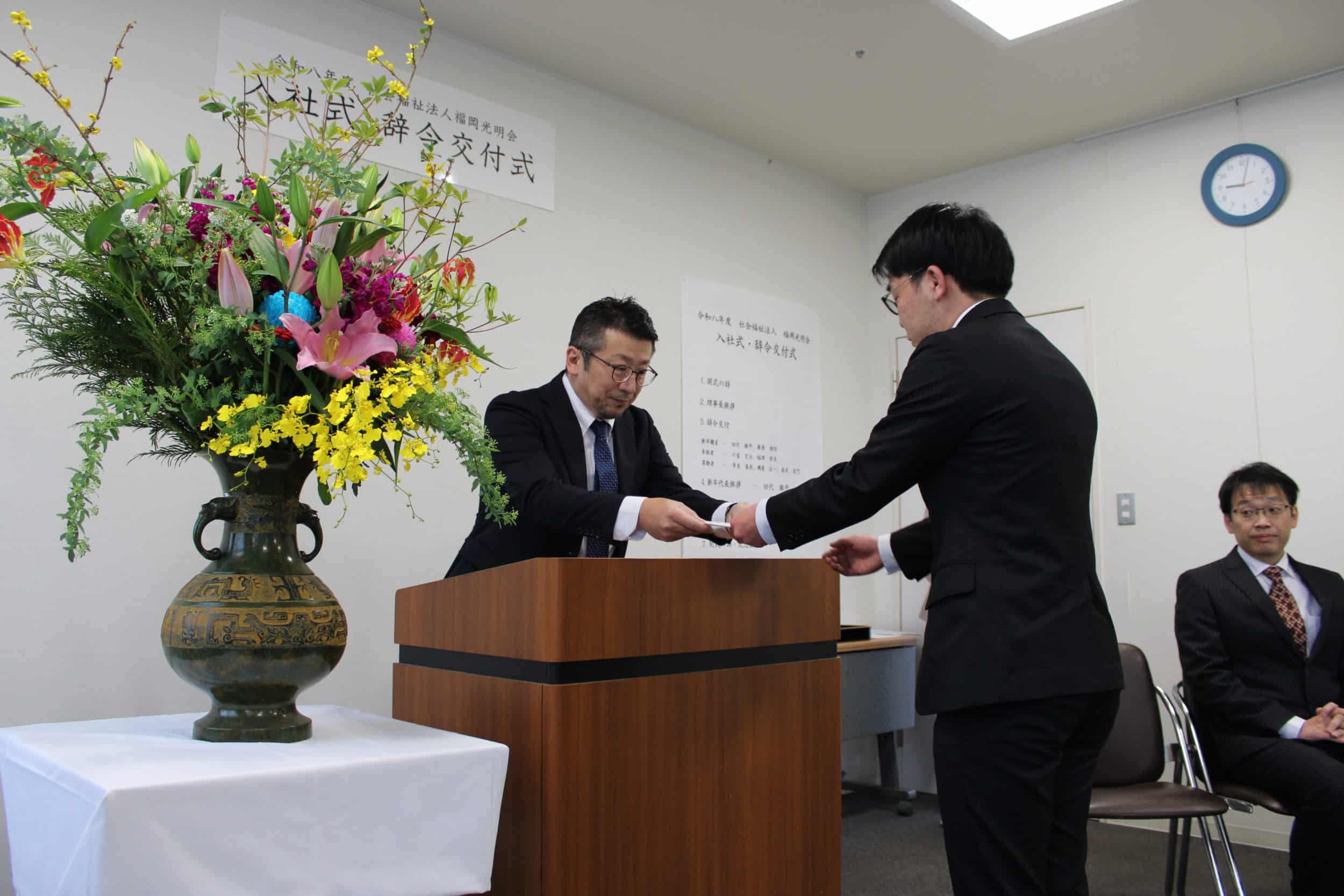 初めに理事長より「利用者様一人ひとりに寄り添う気持ちを大切にしてほしい」との言葉が贈られ、新入職員も真剣な表情で耳を傾けていました。緊張した様子も見られましたが、辞令を受け取る姿からは、これからの決意とやる気が感じられ、とても頼もしく思いました。